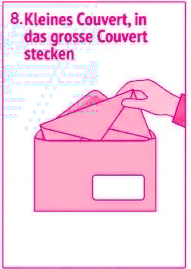 8. Stecke das kleine in das grosse Couvert