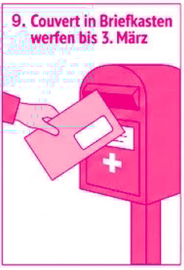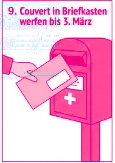 9. Couvert in den Briefkasten heute (spätestens 3. März).